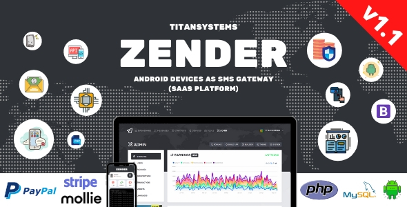 Download Best Seller “Zender – Android Mobile Devices as SMS Gateway (SaaS Platform)” from Codecanyon for category “miscellaneous”. Related Tags: Bulk SMS Marketing, business tools, marketing, php script, php7, quick sms, Saas platform, service provider, sms, SMS Gateway, sms script