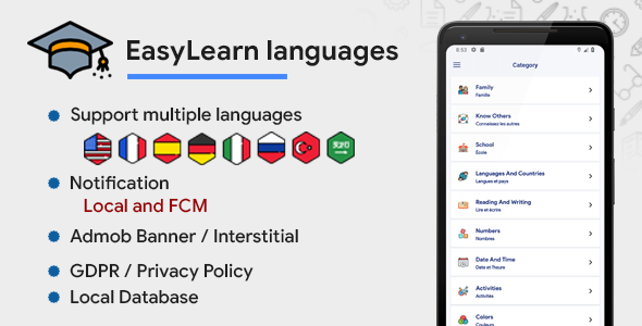 Download Best Seller “EasyLearn languages | AdMob | FCM Push Notification” from Codecanyon for category “android”. Related Tags: learn, learn english, learn languages, speak english