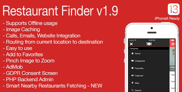 Download Best Seller “Restaurant Finder Full iOS Application v1.9” from Codecanyon for category “full-applications”. Related Tags: call, email, finder, gallery, geolocation, ios12, iphone, locator, photo, php, restaurant, slider, slidingmenu, smartfetch, xcode11